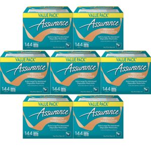 Assurance Premium Washcloths Value Pack 144 Count Per Carton, 7-Pack – Total 1008 Wipes