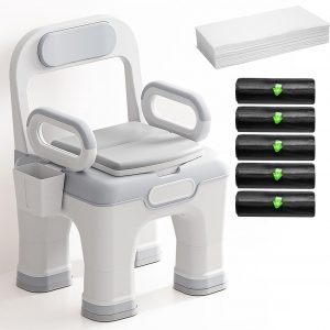 Bedside Commode with 100 Liners and 50 Commode Pads, Upgraded Commode Toilet for Elderly Disabled, Potty Chair for Adults with Enlarged Arms, 3 Height Options, Heavy Duty Bedside Commodes for Seniors