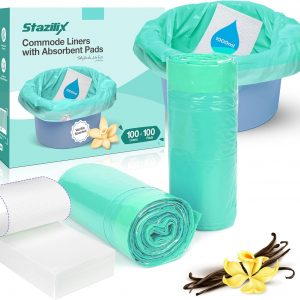 Bedside Commode Liners with Absorbent Pads, Extraordinary Thick (40 Mil) – 100 Liners + 100 Super Absorbent Pads, Leak-Proof, Gel-Lock Absorbent Core, Drawstring Closure