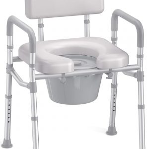 HOMLAND Bedside Commode with Padded Seat and Backrest, Aluminum Commode Toilet with Bucket, Easy Cleaning Portable Toilet for Adults and Seniors, 350 lb Capacity Enhanced Crossba
