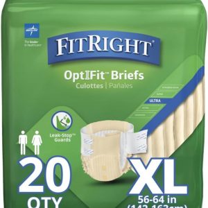FitRight Adult Diapers, Ultra Heavy Absorbency, XL (Waist Size 56in-64in), 20 Count, OptiFit Incontinence Briefs for Men and Women, Disposable, Moisture-Wicking, Leak Protection