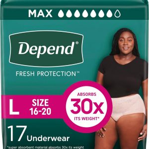 Depend Fresh Protection Adult Diapers, Incontinence And Postpartum Bladder Leak Underwear for Women, Disposable, Maximum, Large, Blush, 3 Package Sizes, Packaging May Vary