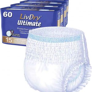 LivDry Large Ultimate Adult Incontinence Underwear, High Absorbency, Leak Cuff Protection, L, 60-Pack