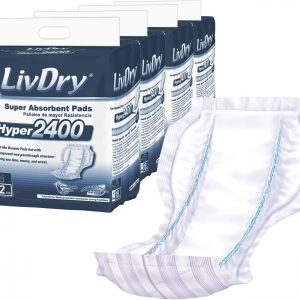 LivDry High Absorbency Pad Insert FOR Incontinence Briefs and Adult Diapers, Women and Men, Hyper 2400 (72 Count)