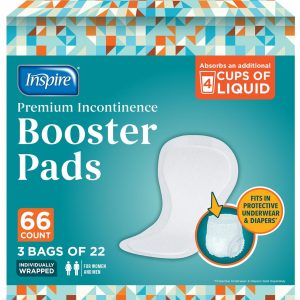 Inspire Ultra Absorbency Incontinence Booster Pads | Absorbs Over 4 Cups! | for Women or Men, Adhesive Strip Use in Incontinence Underwear and Diapers Leak-Free (66 Count)
