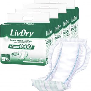 LivDry High Absorbency Pad Insert for Incontinence Briefs and Adult Diapers, Women and Men, Hyper 1600 (120 Count)