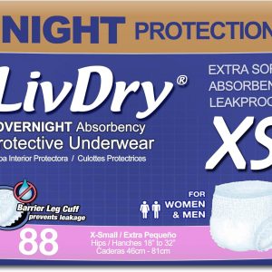 LivDry Adult XS Incontinence Underwear, Overnight Comfort Absorbency, Leak Protection, X-Small, 88-Pack
