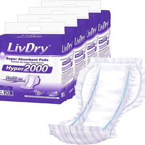 LivDry High Absorbency Pad Insert for Incontinence Briefs and Adult Diapers, Women and Men, Hyper 2000 (80 Count)