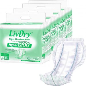 LivDry High Absorbency Pad Insert for Incontinence Briefs and Adult Diapers, Women and Men, Hyper 1200 (120 Count)