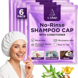 No Rinse Shampoo Caps – Waterless Hair Washing Shower Caps for Bedridden Patients, Elderly and Hospital Use – Disposable Rinseless Conditioning Bathing Supplies with Aloe Vera, Vitamins – 6 Pack