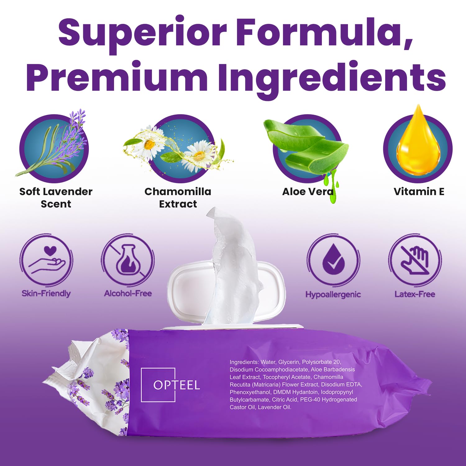 - SKIN-FRIENDLY FORMULA: Infused with mild lavender oil, aloe vera, chamomile extract, and vitamin E; these wipes are ultra-soft, pH balanced, and gentle on sensitive skin.