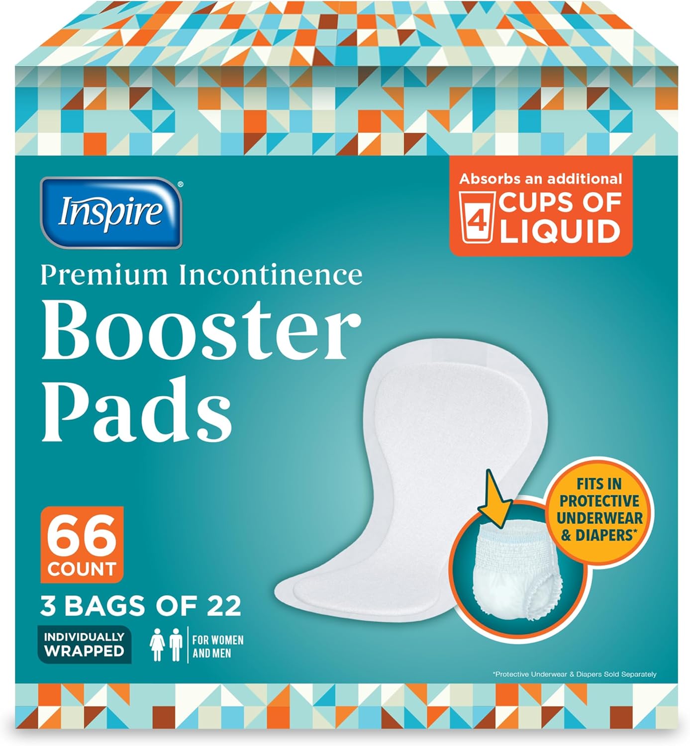 Inspire Ultra Absorbency Incontinence Booster Pads | Absorbs Over 4 Cups! | for Women or Men, Adhesive Strip Use in Incontinence Underwear and Diapers Leak-Free (66 Count)