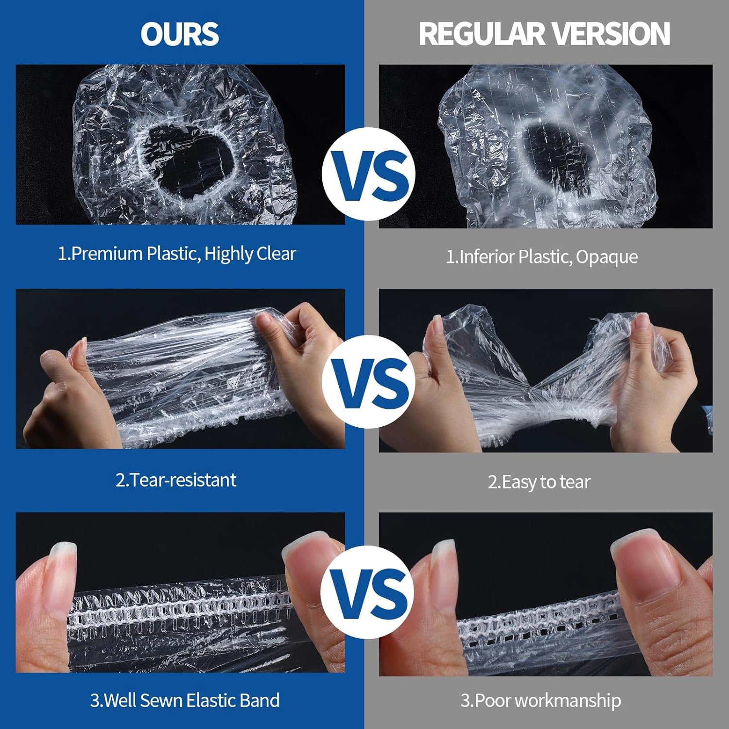 - Comfortable Clear Shower Caps: Quality disposable shower caps for women, odorless and without impurities, elastic and roomy, comfortable for wearing. Waterproof plastic shower caps, well protect against water, dust, mud, friction, keep your hair dry, clean and tidy.