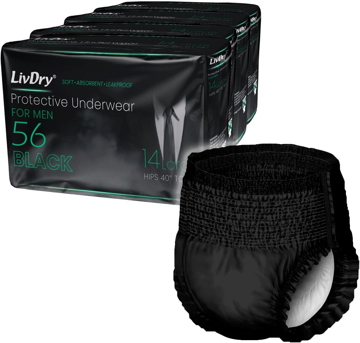 LivDry Mens Incontinence Underwear, Premium Adult Diapers for Men, Ultimate Max Protection, Large 56-Pack