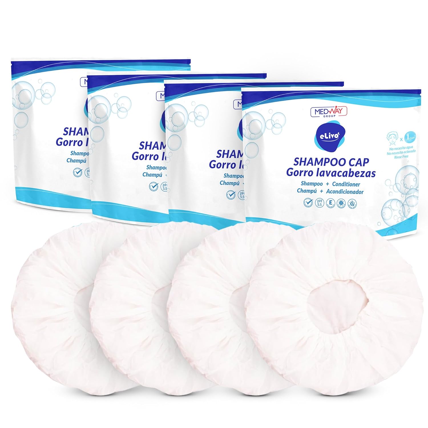 MedVance No Rinse Shampoo Cap | Rinse Free Shower Cap that Shampoos & Conditions | PH Balanced & Hypoallergenic Waterless Hair Wash | 4 Pack